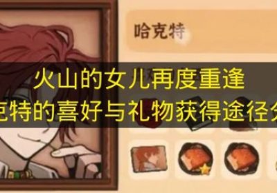 在《火山的女儿:再度重逢》里,哈克特钟爱的物品有红玫瑰、野鸡之类。重要礼物包含香喷喷烤鱼(通过烹饪获取)、哈克特肖像(于野马湖绘制)、《斗鸡八法》(在故事角可得)以及人类的知识(秋…