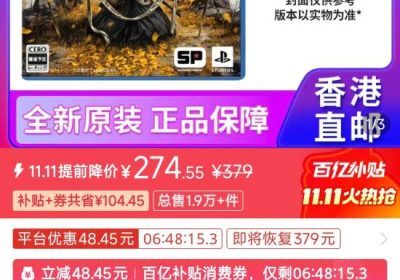 《羊蹄山之魂》早在10月2日就已发售。如今一个月过去,该作实体光盘价格较发售之初大幅下跌。就在今日,拼多多百亿补贴推出了价格为274.55元的《羊蹄山之魂》PS5海外版光盘(需在百…